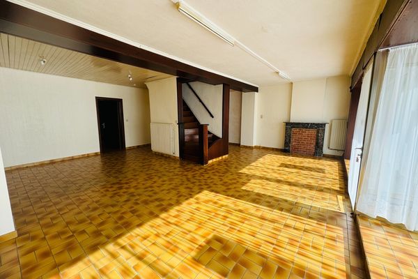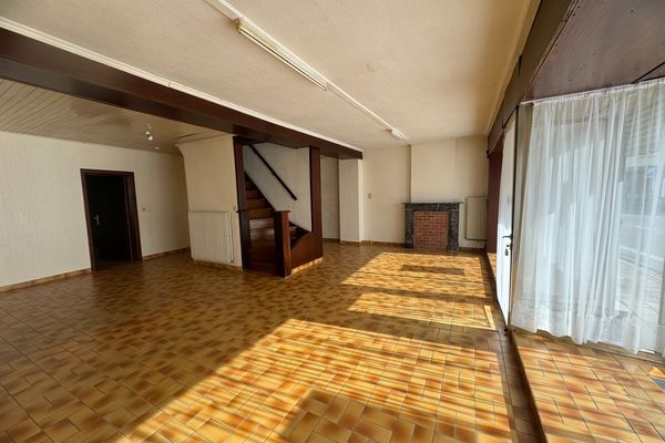 VENDU Située au centre du village et proche des commodités, voici une maison de plus de 200 m² à rafraichir - offrant la possibilité de profession libérale / commerce / logement .... Ce bien se compose d'un rez de chaussée de 120 m² avec une grande pièce en façade de 60m² (ancienne surface commerciale), un espace de vie de 40m² vers l'arrière avec cheminée, une cuisine de 10m², espace buanderie et salle de bains, et d'une cour sans vis à vis de 35m². A l'étage; 1er : 3 chambres dont une avec point d'eau, salle de bains et wc. 2ème : vaste grenier aménageable de 65 m². Le bien dispose aussi d'une cave. Chauffage central mazout, chassis pvc double vitrage à l'arrière, toiture en très bon état (20 ans), PEB : F - RC : 532 €. Visite et infos au 0476 / 27 29 08 VENDU