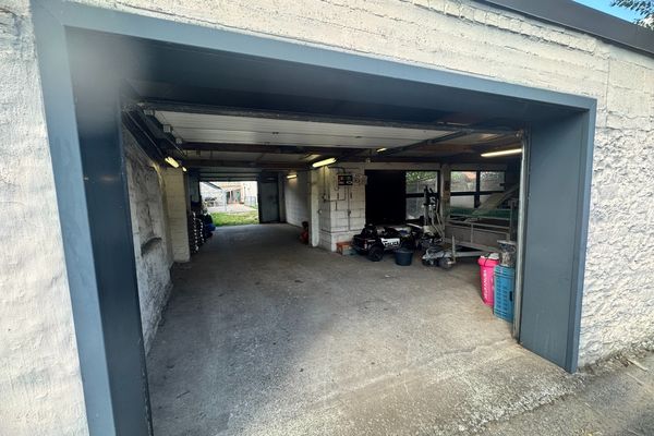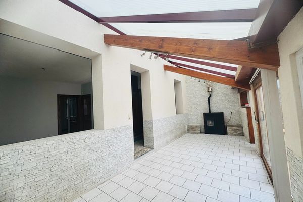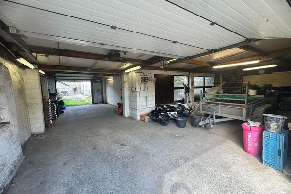 A l'extérieur : la maison dispose d'une terrasse de 20 m² et d'un jardin - superficie totale de 4 a 70 ca, et à l'arrière d'un vaste garage de 76 m² (3 voitures).