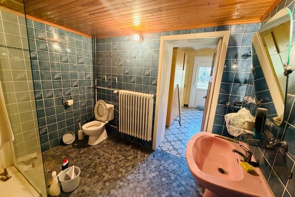 La maison se compose d'un hall, bureau de 22m², living 40 m², cuisine, buanderie, salle de bains et débarras au rez de chaussée ainsi que de 3 chambres (23 - 13 et 15m²) à l'étage + grenier aménageable.