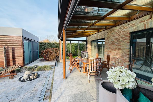 Nichée dans un environnement verdoyant et paisible, à proximité des canaux, cette superbe villa quatre façades construite en 2006 séduit dès les premiers instants par son élégance, sa luminosité et son confort de vie exceptionnel.